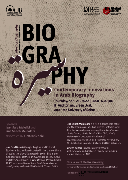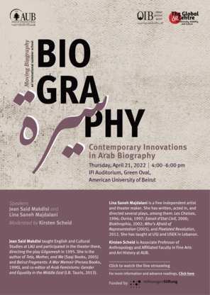 In this conversation moderated by Kirsten Scheid, Jean Said Makdisi and Lina Saneh Majdalani reflect on their approaches to biographies, with particular reference to their works Teta, Mother, and Me and Biokhraphia.