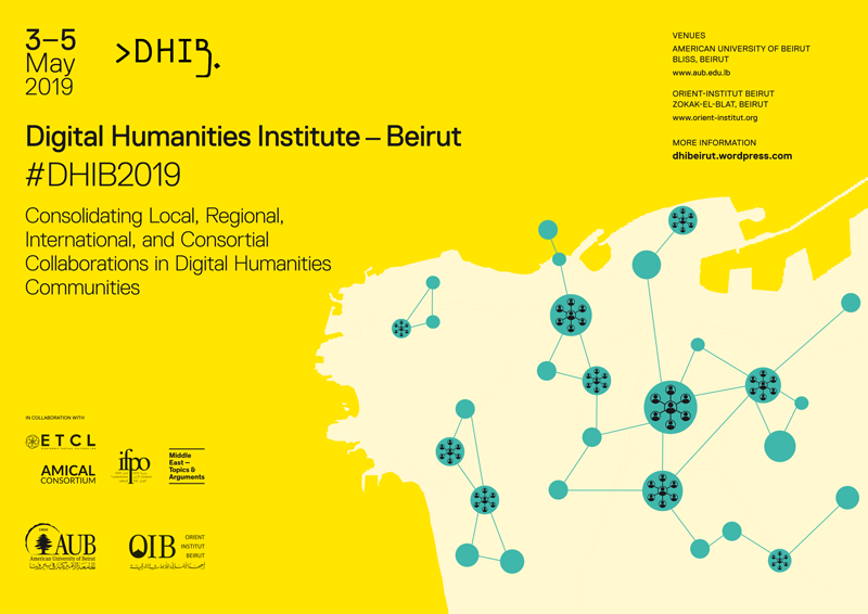 Digital Humanities Institute - Beirut 2019 will revolve around "Consolidating Local, Regional, International, and Consortial Collaborations in Digital Humanities Communities." After DHI-B 2015 and 2017, this third iteration of the Digital Humanities Institute – Beirut (DHI-B) will build upon progress made in both research and community building in Lebanon, extending outward to Egypt, the UAE, Canada, the USA, and members of the AMICAL consortium. The event aims to consolidate on all previous efforts to create a culture of collaboration and openness in research and pedagogy in the Digital Humanities, as well as to encourage growth of communities of practice, by providing Digital Humanities training with a regional and international focus. It is founded on the principles of co-learning and co-teaching of a community of faculty and students, librarians, and instructional design staff.