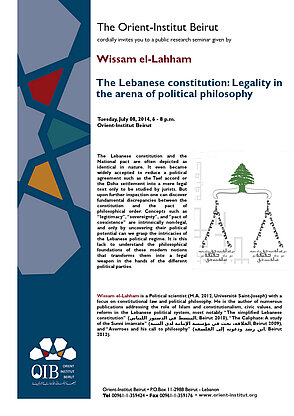 The Lebanese constitution and the National pact are often depicted as identical in nature. It even became widely accepted to reduce a political agreement such as the Taef accord or the Doha settlement into a mere legal text only to be studied by jurists. But upon further inspection one can discover fundamental discrepancies between the constitution and the pact of philosophical order. Concepts such as “legitimacy”, “sovereignty”, and “pact of coexistence” are intrinsically non-legal, and only by uncovering their political potential can we grasp the intricacies of the Lebanese political regime. It is this lack to understand the philosophical foundations of these modern notions that transforms them into a legal weapon in the hands of the different political parties.